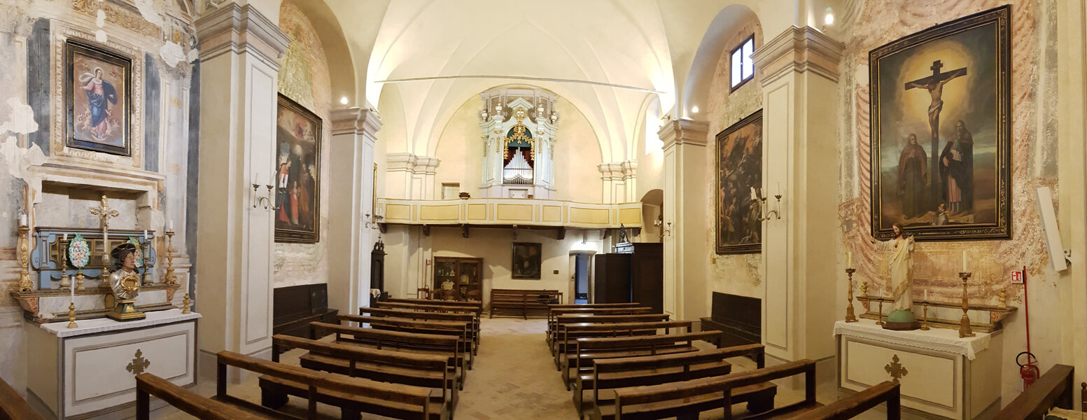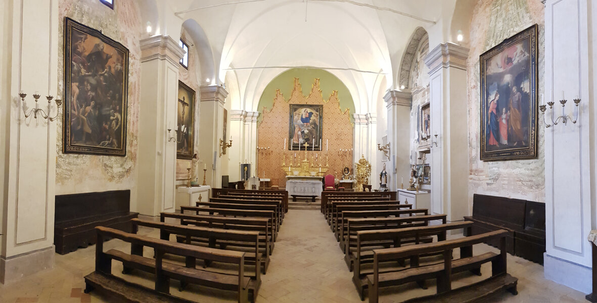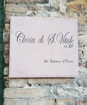 La Chiesa di San Vitale, gioiello artistico del XV secolo, è incorniciata da un magnifico giardino affacciato sulla splendida valle del torrente Tescio.